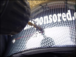 This image shows (just) the nut on the inside of the helmet ready for the bolt to be screwed into place.