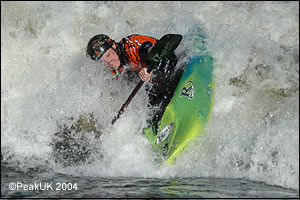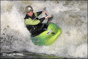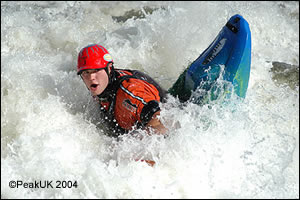 I carried on down the course and went to see how it coped with eddys, eddy fences and all that jazz. The thigh hookers AGAIN came into play as they allow you to squeez and pry the boat into the smallest of eddys and through the craziest of boilies. I felt more stable in this WITHOUT leaning my 14 stones over the bow than I do in my DISCO (which I happily run grade 3/4(/5) in). Messing around on an eddy one realises how much POP the boat has. I turned a plough across the fence into a HUGE arial pop-out and air-wheel. NICE!