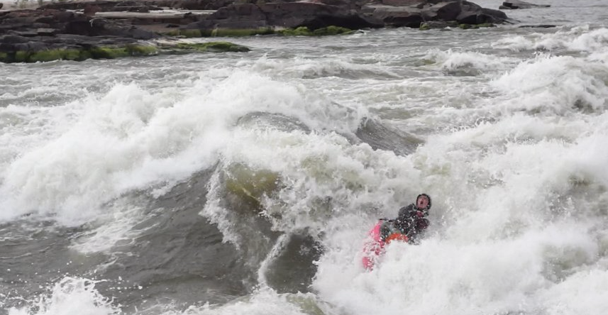 Rockem Sockem is the name of a rapid and a wave on the Slave river. The wave is good at low water (about 3400-3500 cms) which is usually in the fall. It’s a very dynamic and steep wave, offering some good air. The good pocket of the wave is accessed by surfing through the “penalty box” (or by hiking and dropping in from above). The penalty box is a vicious little pocket of a hole that dishes out some beatings (see this video vimeo.com/112213319 for solid penalty box time), but surfing the main wave makes it all worthwhile. Continue reading